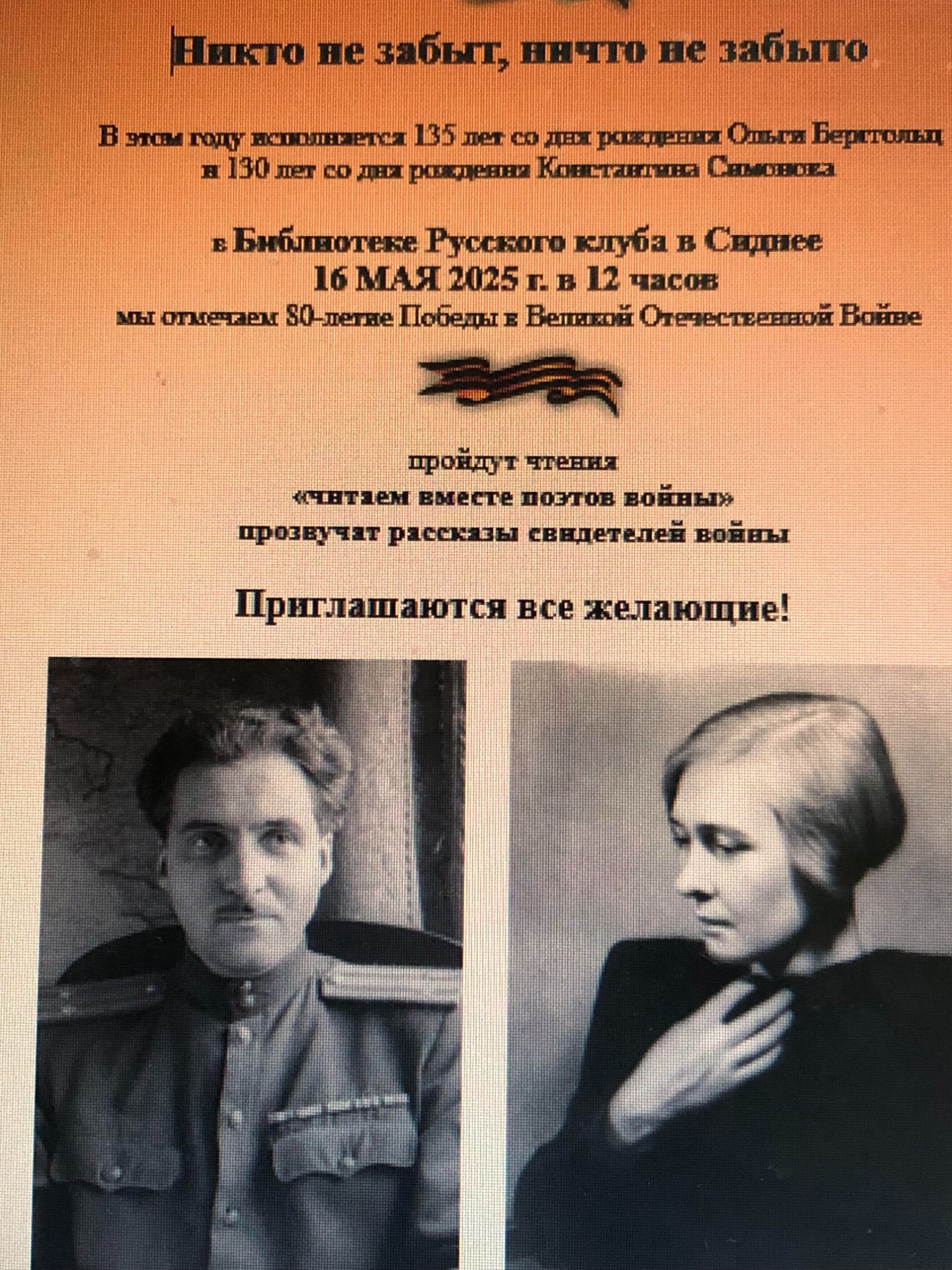Чтение стихов Ольги Берггольц и Константина Симонова в библиотеке Русского клуба